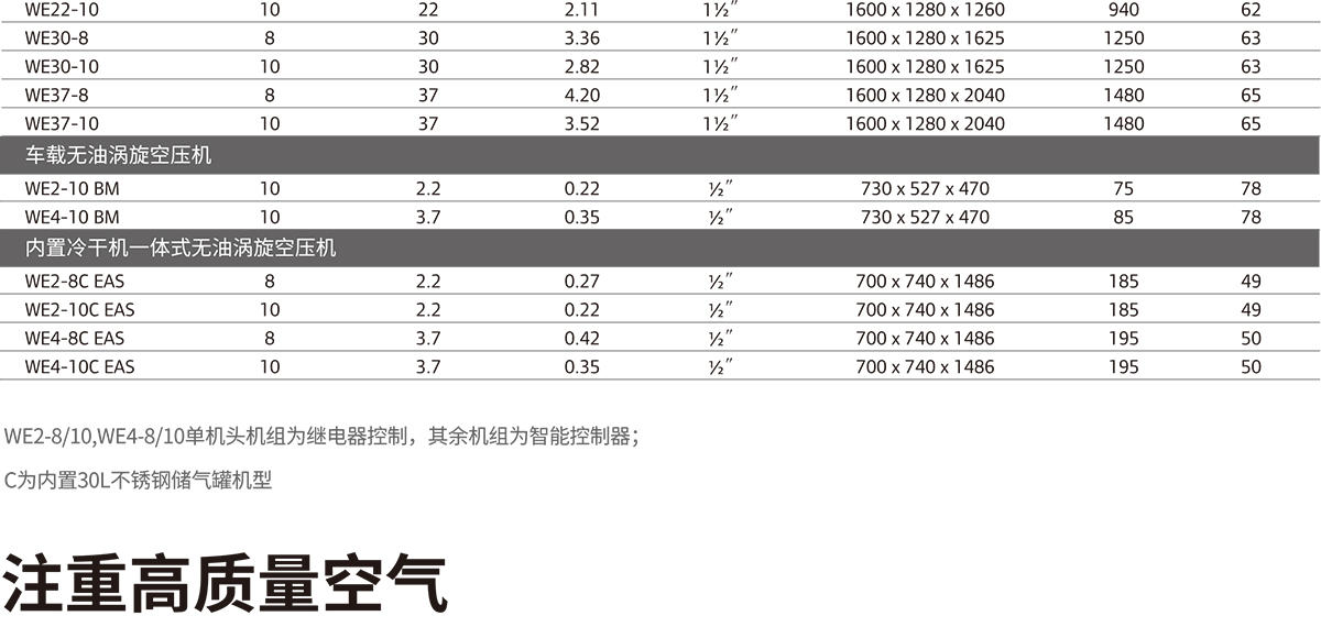 產(chǎn)品名稱:WE系列22-37kW無(wú)油渦旋式空氣壓縮機(jī)
