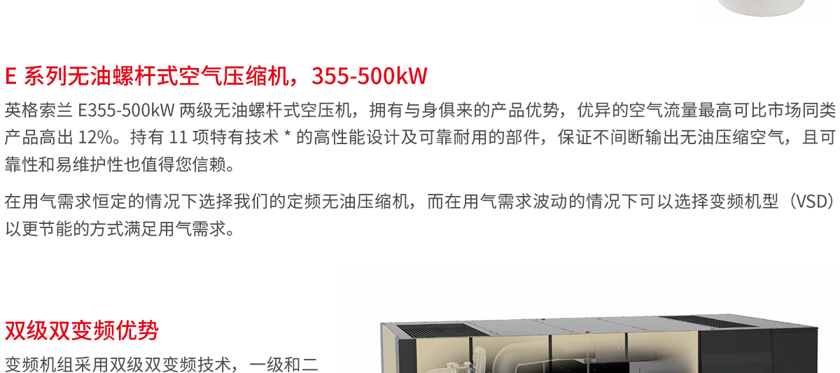 產(chǎn)品名稱:E系列355-500kW無油螺桿式壓縮空氣系統(tǒng)